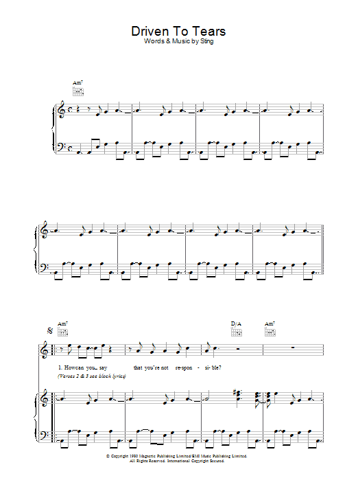 Download or print The Police Driven To Tears sheet music, chords and digital score arranged for Guitar Chords/Lyrics. This Rock score includes 2 page(s).