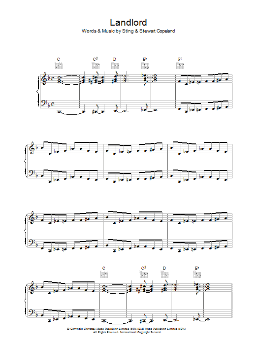 Download or print The Police Landlord sheet music, chords and digital score arranged for Guitar Chords/Lyrics. This Rock score includes 3 page(s).