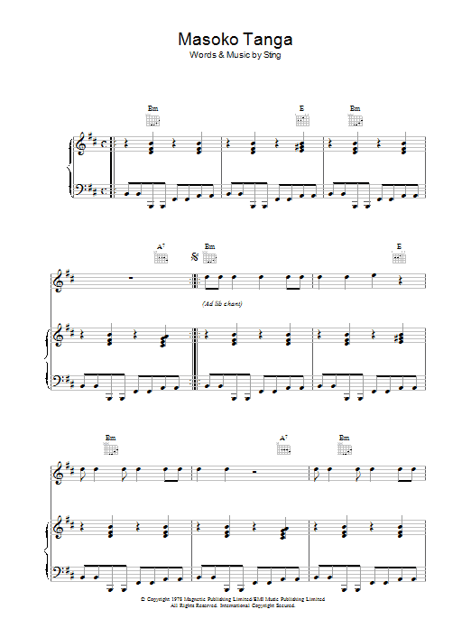 Download or print The Police Masoko Tanga sheet music, chords and digital score arranged for Guitar Tab. This Pop score includes 2 page(s).