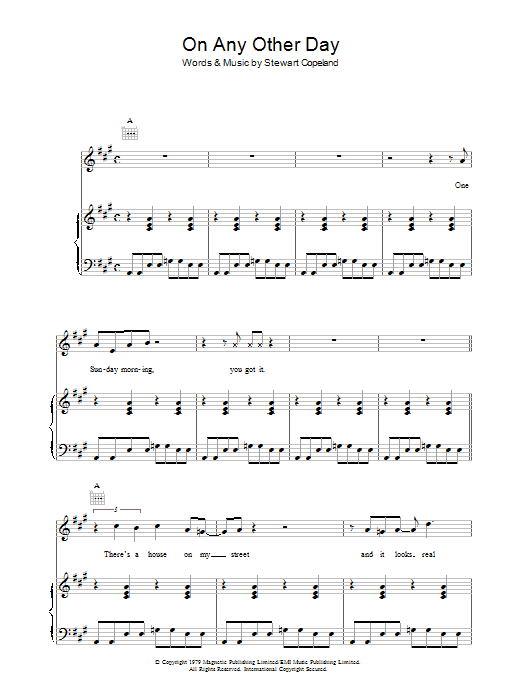 Download or print The Police On Any Other Day sheet music, chords and digital score arranged for Guitar Chords/Lyrics. This Rock score includes 2 page(s).