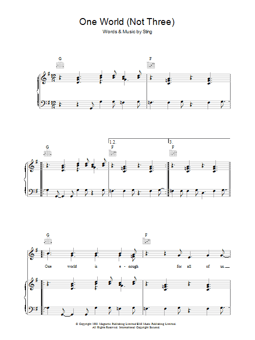Download or print The Police One World (Not Three) sheet music, chords and digital score arranged for Guitar Chords/Lyrics. This Rock score includes 2 page(s).