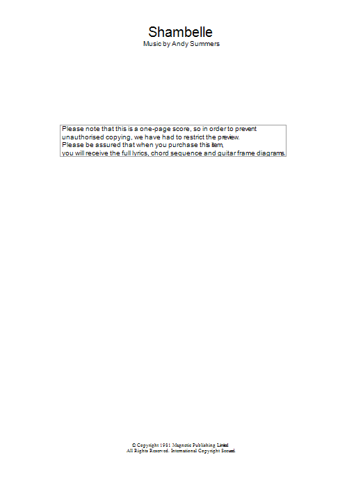 Download or print The Police Shambelle sheet music, chords and digital score arranged for Guitar Chords/Lyrics. This Rock score includes 2 page(s).