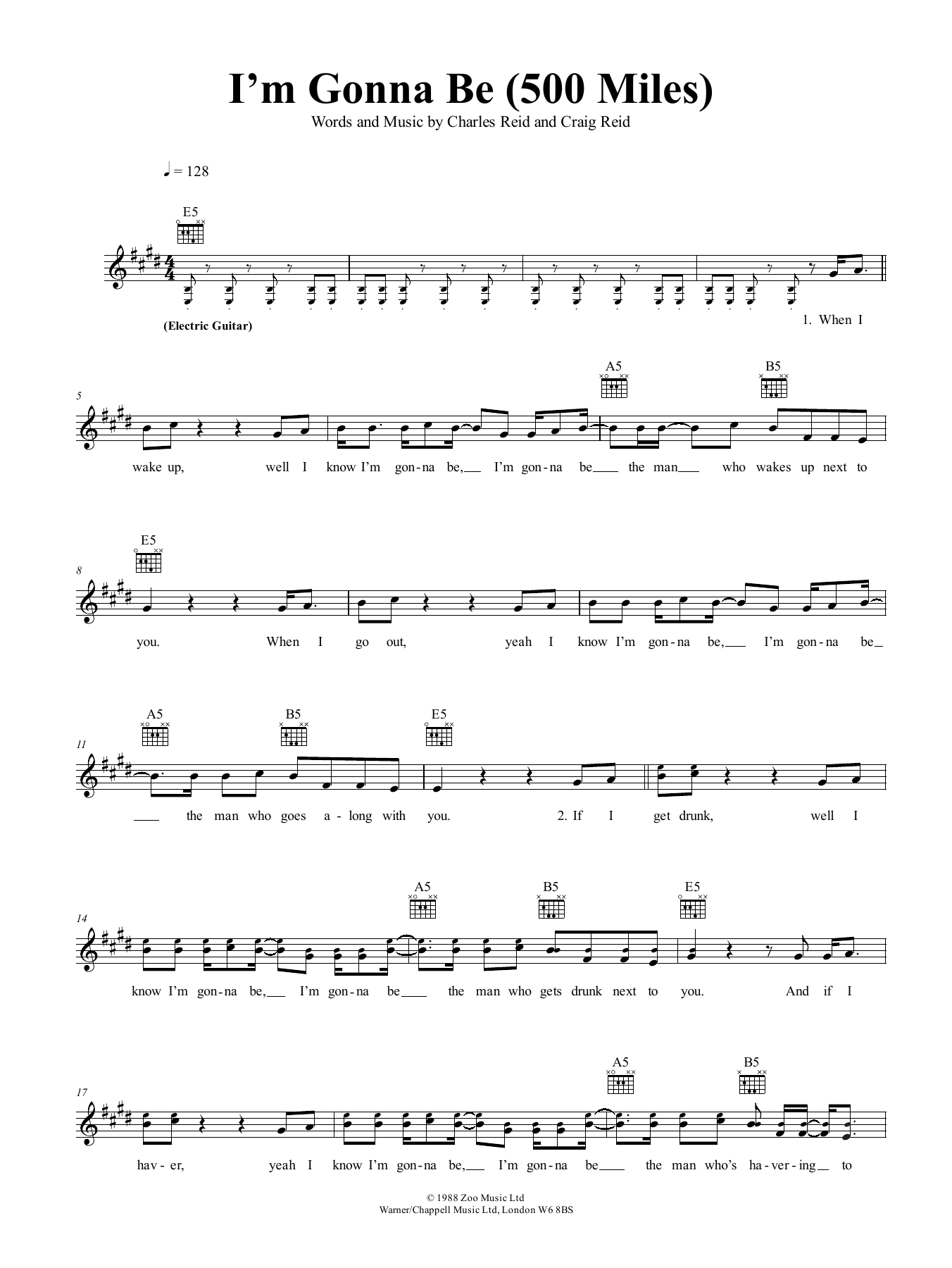 Quick facts I'm Gonna Be (500 Miles) about digital sheet music