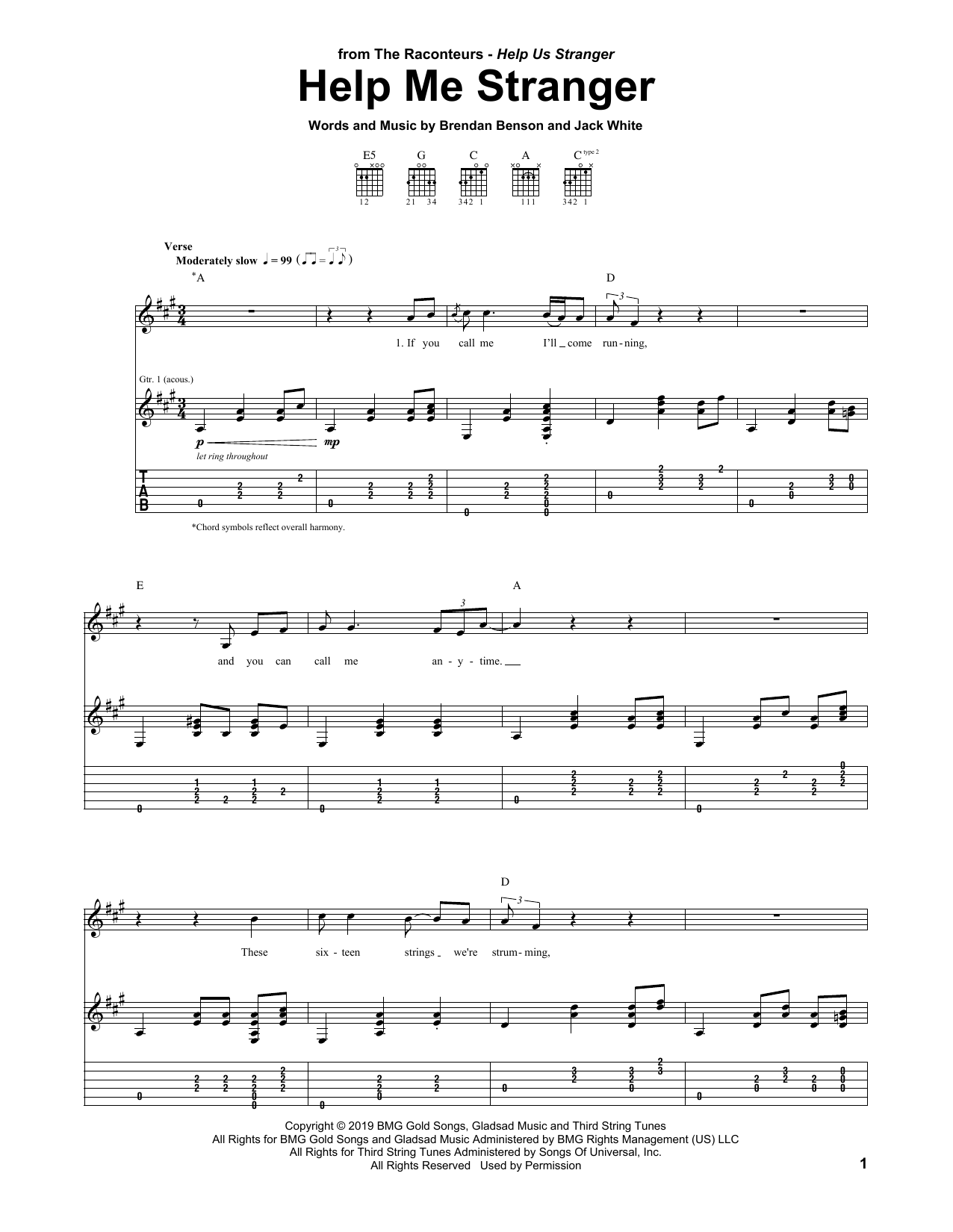 Download or print The Raconteurs Help Me Stranger sheet music, chords and digital score arranged for Guitar Tab. This Rock score includes 11 page(s).