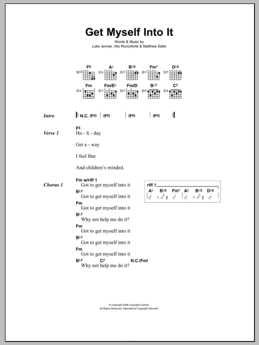 Download or print The Rapture Get Myself Into It sheet music, chords and digital score arranged for Guitar Chords/Lyrics. This Rock score includes 3 page(s).