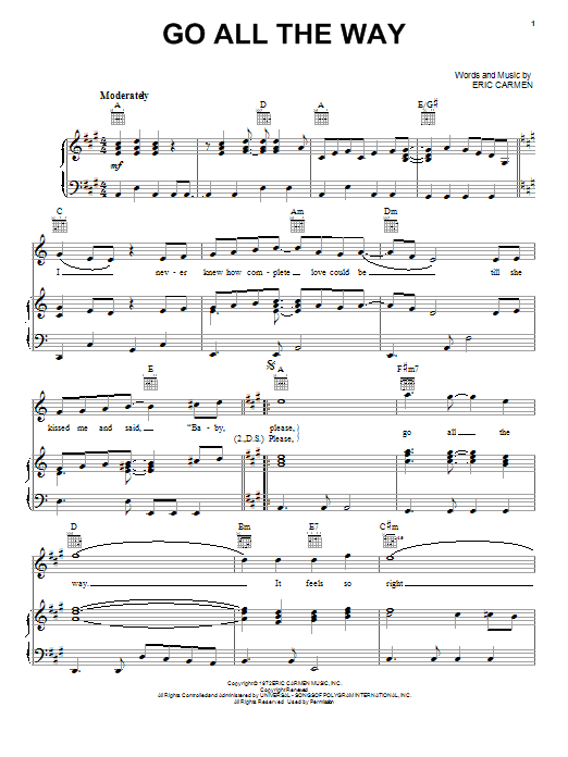 Quick facts Go All The Way about digital sheet music