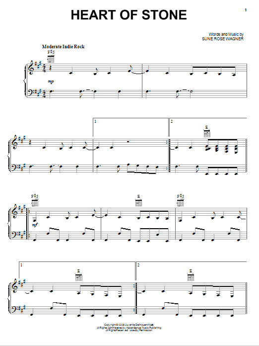 Download or print The Raveonettes Heart Of Stone sheet music, chords and digital score arranged for Piano, Vocal & Guitar Chords (Right-Hand Melody). This Film/TV score includes 5 page(s).