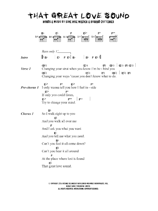 Download or print The Raveonettes That Great Love Sound sheet music, chords and digital score arranged for Guitar Chords/Lyrics. This Rock score includes 3 page(s).