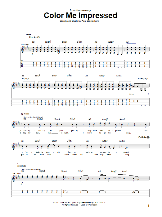 Download or print The Replacements Color Me Impressed sheet music, chords and digital score arranged for Guitar Tab. This Alternative score includes 6 page(s).