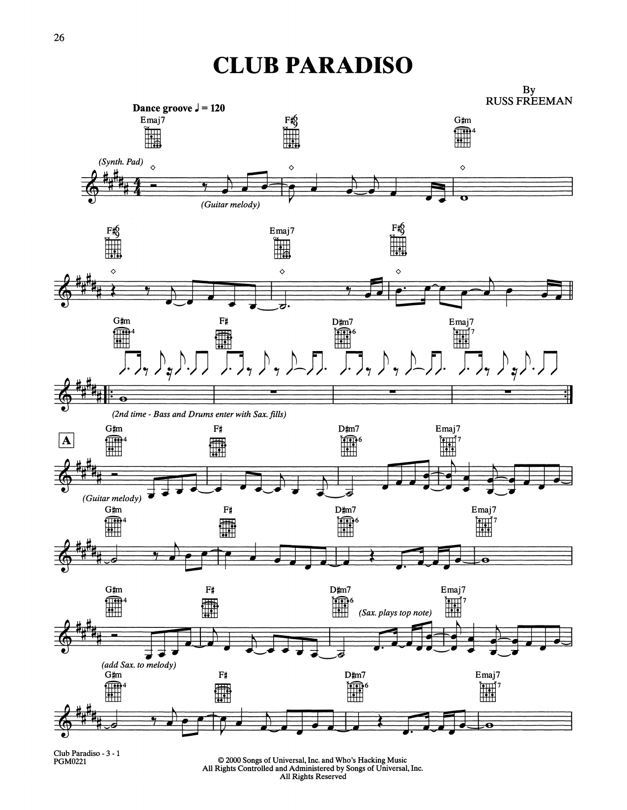 Download or print The Rippingtons Club Paradiso sheet music, chords and digital score arranged for Solo Guitar. This Jazz score includes 6 page(s).