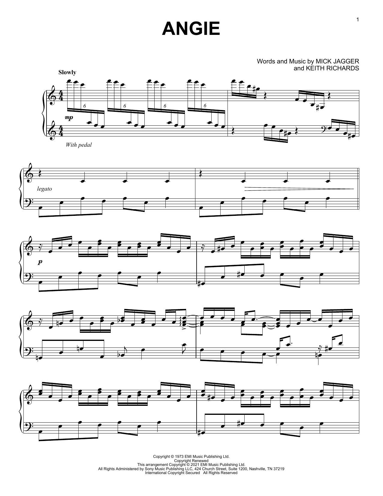 Download or print The Rolling Stones Angie [Classical version] (arr. David Pearl) sheet music, chords and digital score arranged for Piano Solo. This Rock score includes 7 page(s).