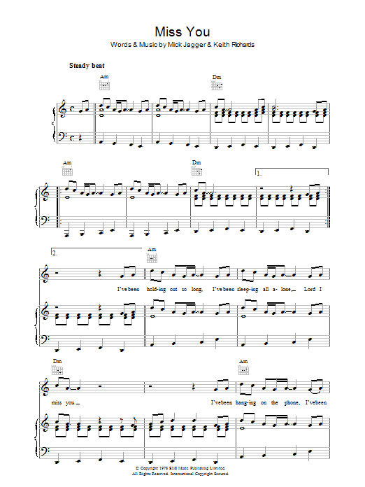 Download or print The Rolling Stones Miss You sheet music, chords and digital score arranged for Lead Sheet / Fake Book. This Rock score includes 2 page(s).