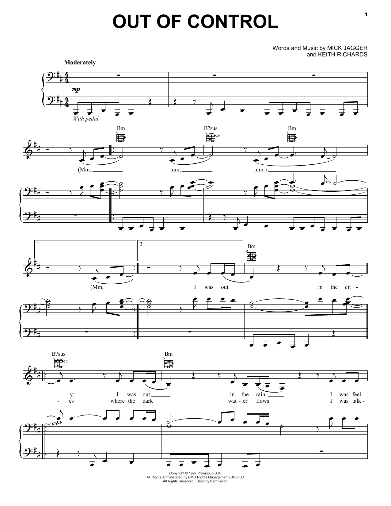 Download or print The Rolling Stones Out Of Control sheet music, chords and digital score arranged for Piano, Vocal & Guitar Chords (Right-Hand Melody). This Pop score includes 7 page(s).