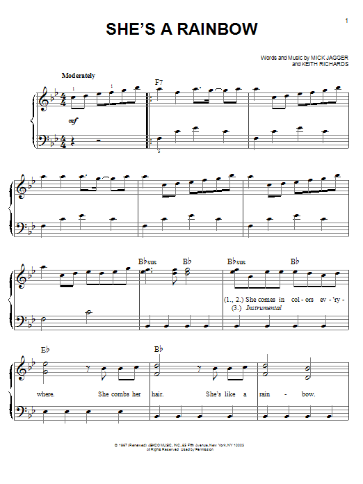 Quick facts She's A Rainbow about digital sheet music