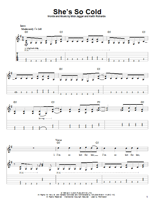 Download or print The Rolling Stones She's So Cold sheet music, chords and digital score arranged for Easy Piano. This Rock score includes 6 page(s).