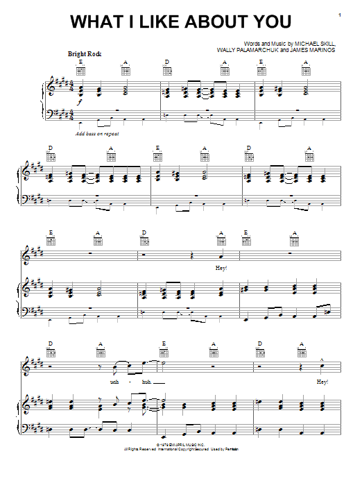 Quick facts What I Like About You about digital sheet music