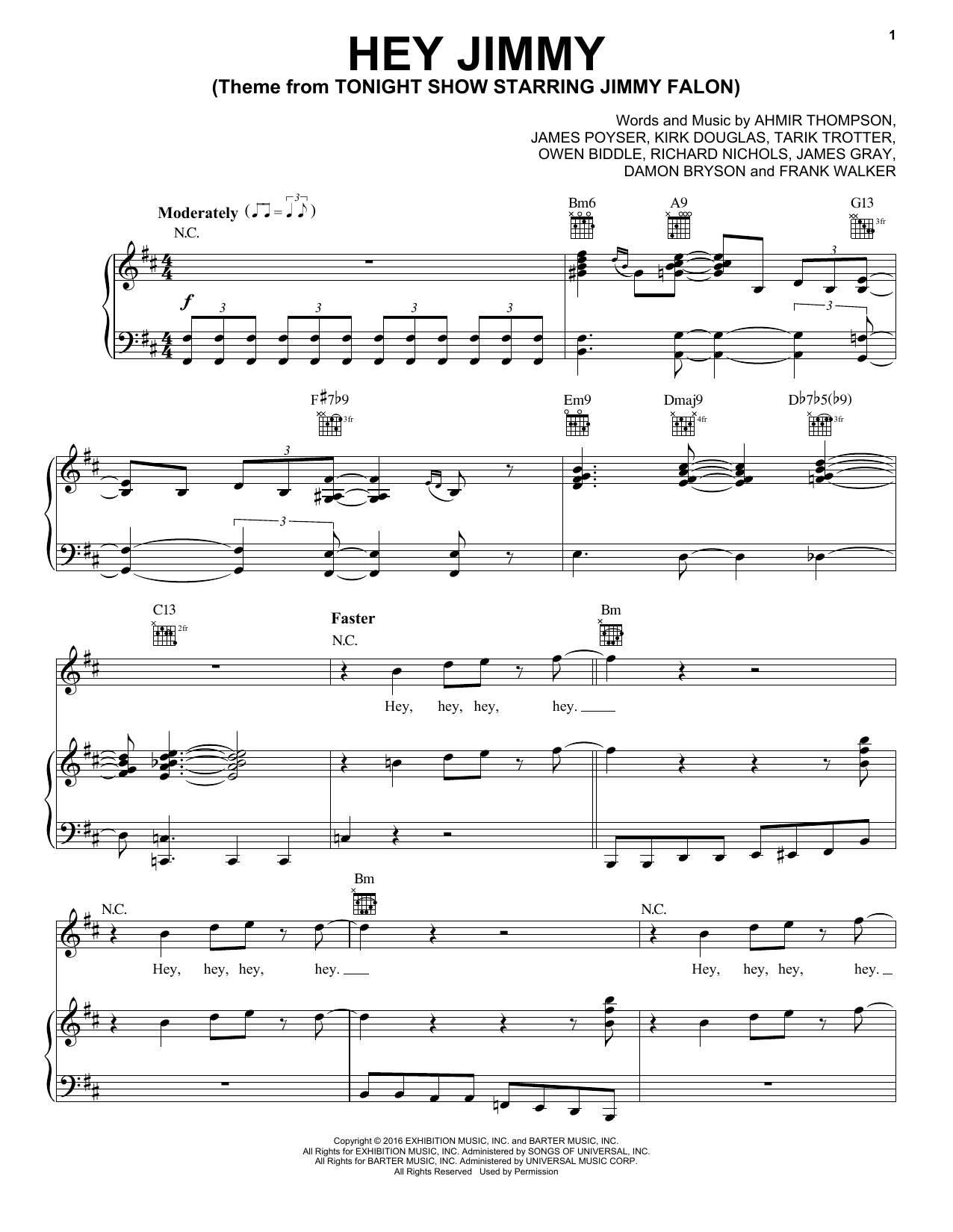 Quick facts Hey Jimmy (Theme from Tonight Show Starring Jimmy Fallon) about digital sheet music