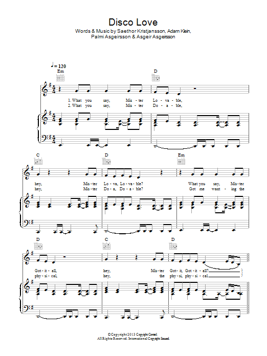 Download or print The Saturdays Disco Love sheet music, chords and digital score arranged for Piano, Vocal & Guitar Chords. This Pop score includes 5 page(s).