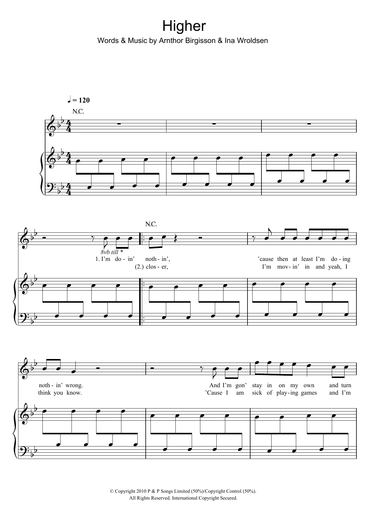 Download or print The Saturdays Higher sheet music, chords and digital score arranged for Piano, Vocal & Guitar Chords. This Pop score includes 5 page(s).