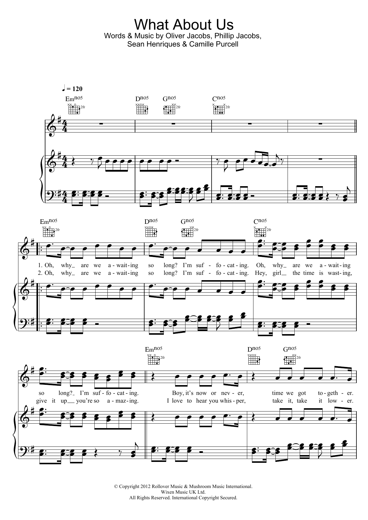 Download or print The Saturdays What About Us (featuring Sean Paul) sheet music, chords and digital score arranged for Piano, Vocal & Guitar Chords. This Pop score includes 7 page(s).