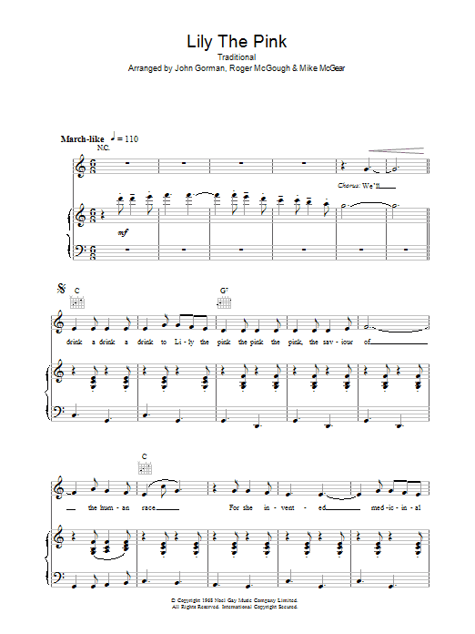 Download or print The Scaffold Lily The Pink sheet music, chords and digital score arranged for Guitar Chords/Lyrics. This Pop score includes 3 page(s).