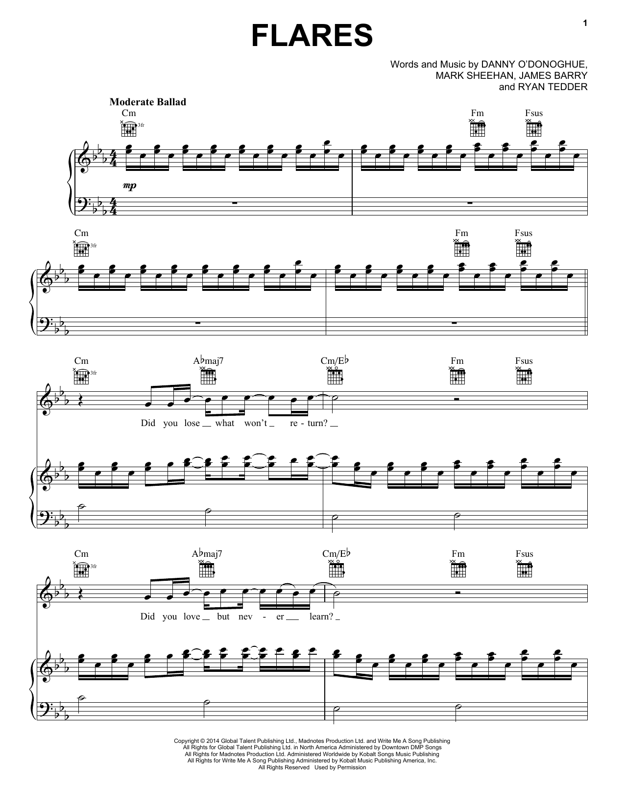 Download or print The Script Flares sheet music, chords and digital score arranged for Piano, Vocal & Guitar Chords (Right-Hand Melody). This Pop score includes 7 page(s).