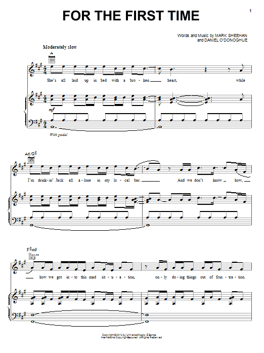 Download or print The Script For The First Time sheet music, chords and digital score arranged for Piano, Vocal & Guitar Chords. This Pop score includes 7 page(s).