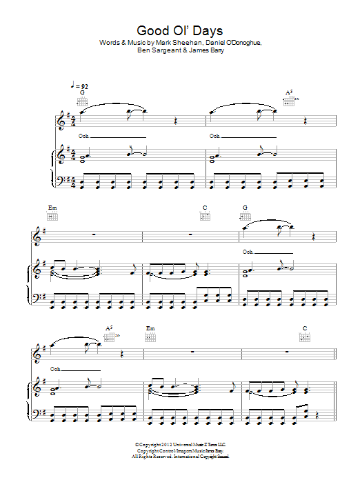 Download or print The Script Good Ol' Days sheet music, chords and digital score arranged for Piano, Vocal & Guitar Chords. This Pop score includes 7 page(s).