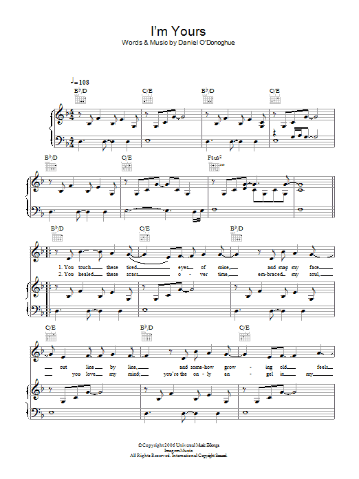 Download or print The Script I'm Yours sheet music, chords and digital score arranged for Piano, Vocal & Guitar Chords. This Pop score includes 4 page(s).