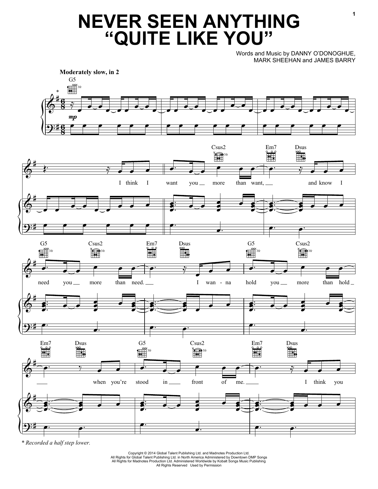 Download or print The Script Never Seen Anything "Quite Like You" sheet music, chords and digital score arranged for Piano, Vocal & Guitar Chords (Right-Hand Melody). This Pop score includes 6 page(s).