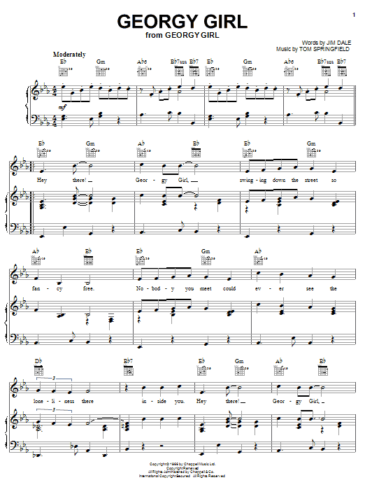 Download or print The Seekers Georgy Girl sheet music, chords and digital score arranged for Easy Piano. This Film/TV score includes 4 page(s).
