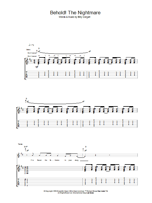 Download or print The Smashing Pumpkins Behold! The Nightmare sheet music, chords and digital score arranged for Guitar Tab. This Pop score includes 11 page(s).