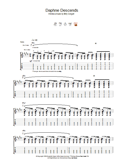 Download or print The Smashing Pumpkins Daphne Descends sheet music, chords and digital score arranged for Guitar Tab. This Pop score includes 6 page(s).