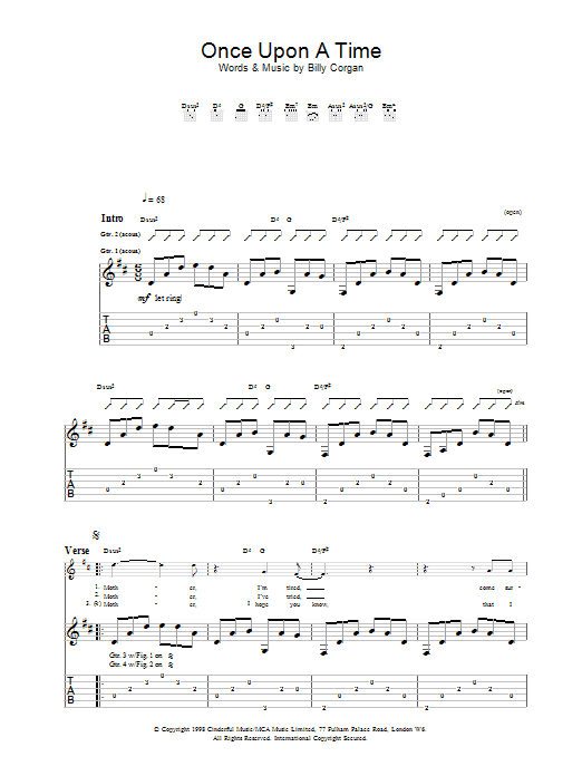 Download or print The Smashing Pumpkins Once Upon A Time sheet music, chords and digital score arranged for Guitar Tab. This Pop score includes 6 page(s).