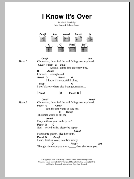 Download or print The Smiths I Know It's Over sheet music, chords and digital score arranged for Guitar Chords/Lyrics. This Rock score includes 3 page(s).