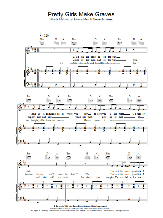 Download or print The Smiths Pretty Girls Make Graves sheet music, chords and digital score arranged for Guitar Chords/Lyrics. This Rock score includes 2 page(s).