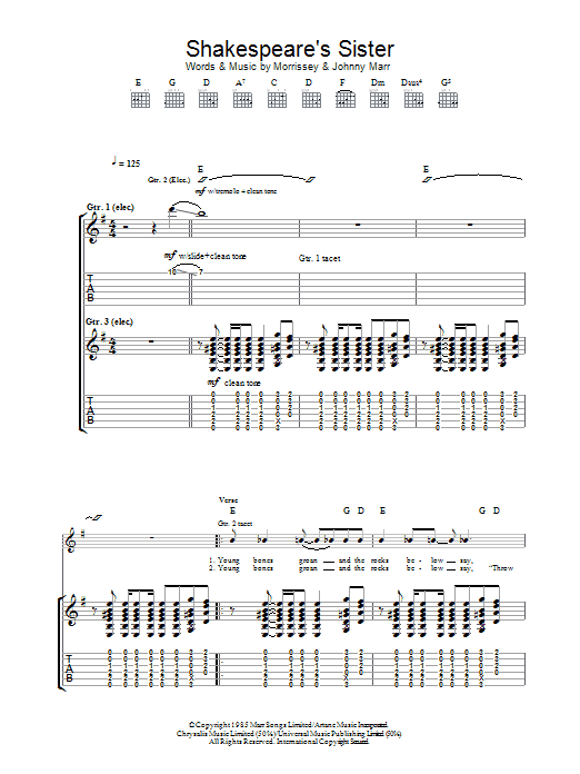 Download or print The Smiths Shakespeare's Sister sheet music, chords and digital score arranged for Guitar Chords/Lyrics. This Rock score includes 2 page(s).
