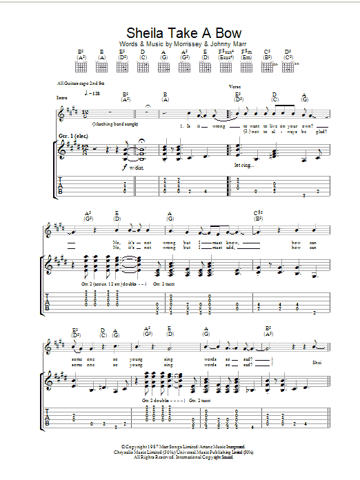 Download or print The Smiths Sheila Take A Bow sheet music, chords and digital score arranged for Guitar Chords/Lyrics. This Rock score includes 2 page(s).
