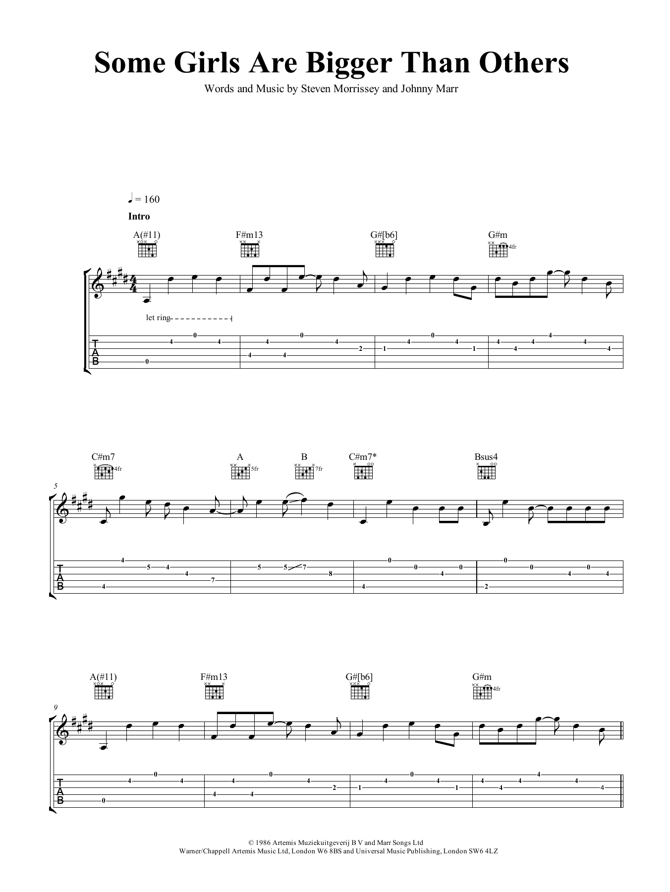 Download or print The Smiths Some Girls Are Bigger Than Others sheet music, chords and digital score arranged for Guitar Tab. This Rock score includes 4 page(s).