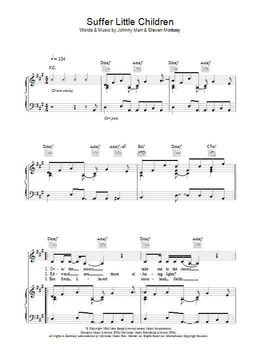 Download or print The Smiths Suffer Little Children sheet music, chords and digital score arranged for Guitar Chords/Lyrics. This Rock score includes 4 page(s).