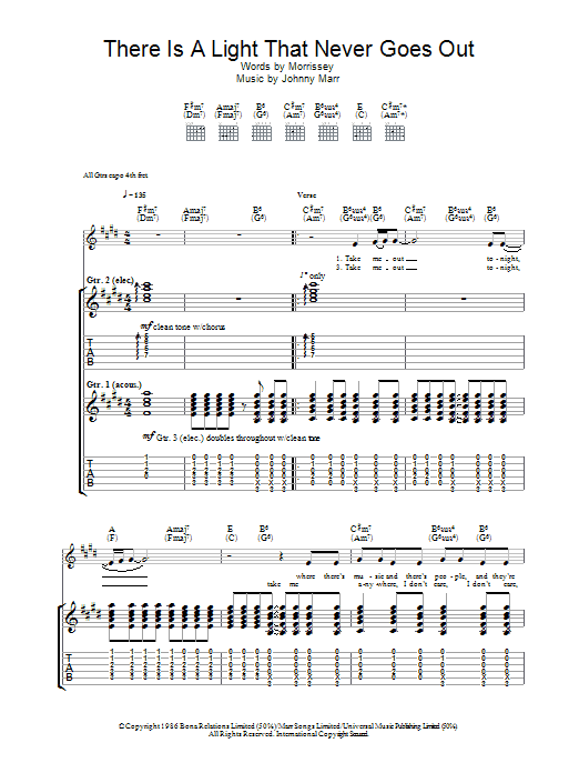 Download or print The Smiths There Is A Light That Never Goes Out sheet music, chords and digital score arranged for Lead Sheet / Fake Book. This Alternative score includes 2 page(s).