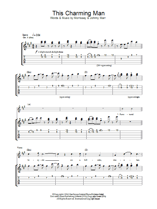Download or print The Smiths This Charming Man sheet music, chords and digital score arranged for Guitar Chords/Lyrics. This Rock score includes 2 page(s).