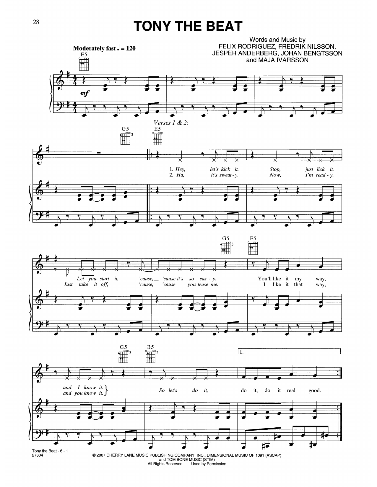 Download or print The Sounds Tony The Beat (from Music And Lyrics) sheet music, chords and digital score arranged for Piano, Vocal & Guitar Chords (Right-Hand Melody). This Film/TV score includes 6 page(s).