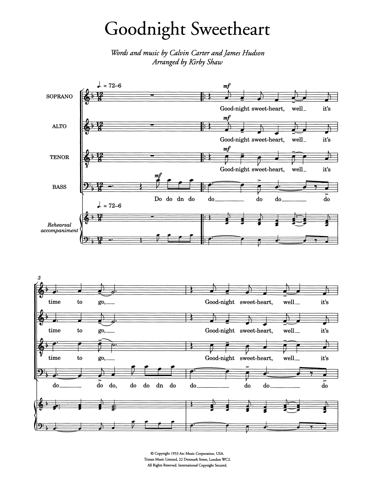 Quick facts Goodnight Sweetheart (arr. Kirby Shaw) about digital sheet music