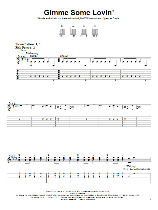 Download or print The Spencer Davis Group Gimme Some Lovin' sheet music, chords and digital score arranged for Very Easy Piano. This Pop score includes 3 page(s).
