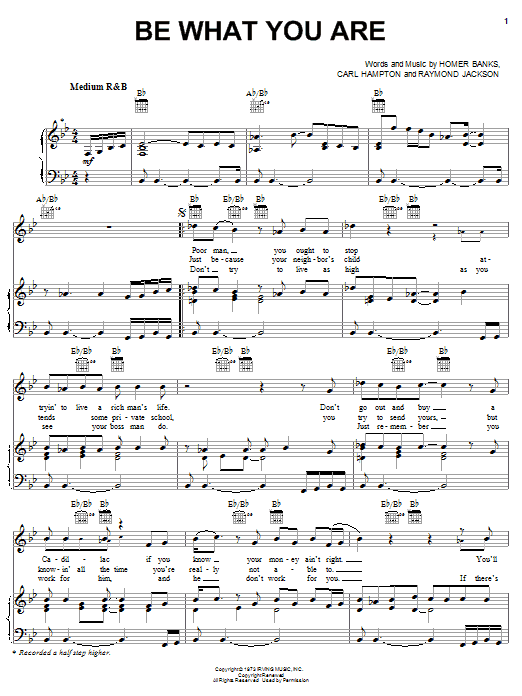 Download or print The Staple Singers Be What You Are sheet music, chords and digital score arranged for Piano, Vocal & Guitar Chords (Right-Hand Melody). This Inspirational score includes 5 page(s).