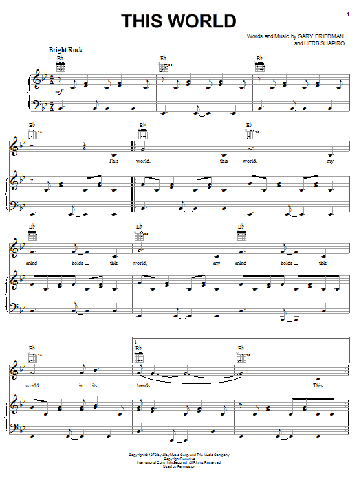 Download or print The Staple Singers This World sheet music, chords and digital score arranged for Piano, Vocal & Guitar Chords (Right-Hand Melody). This Inspirational score includes 5 page(s).