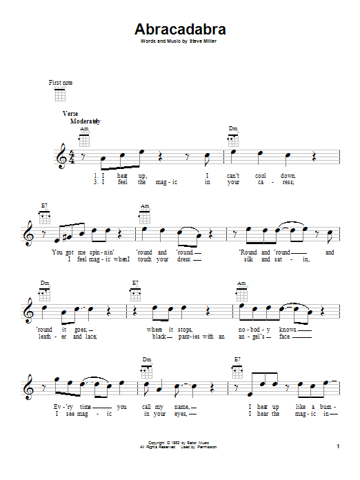 Download or print The Steve Miller Band Abracadabra sheet music, chords and digital score arranged for Guitar Chords/Lyrics. This Rock score includes 3 page(s).