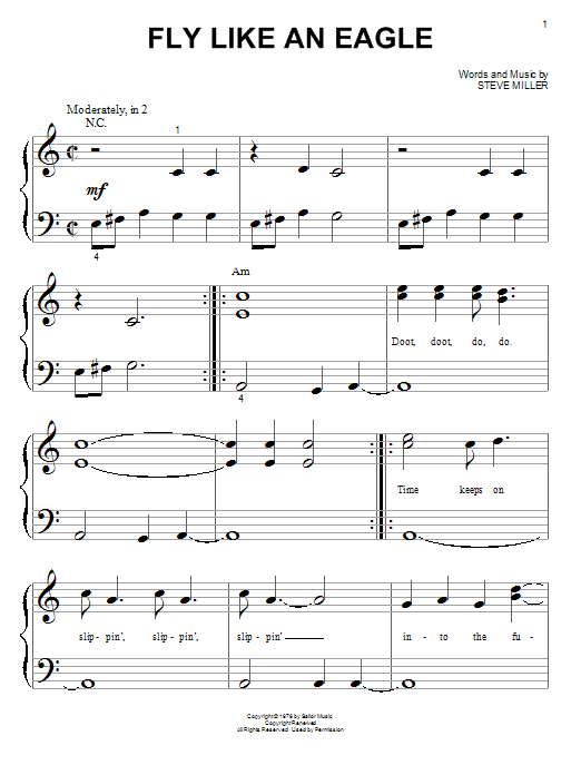 Download or print The Steve Miller Band Fly Like An Eagle sheet music, chords and digital score arranged for Lead Sheet / Fake Book. This Rock score includes 3 page(s).