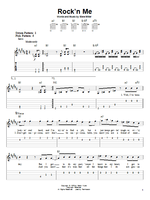 Download or print Steve Miller Band Rock'n Me sheet music, chords and digital score arranged for Easy Piano. This Blues score includes 4 page(s).